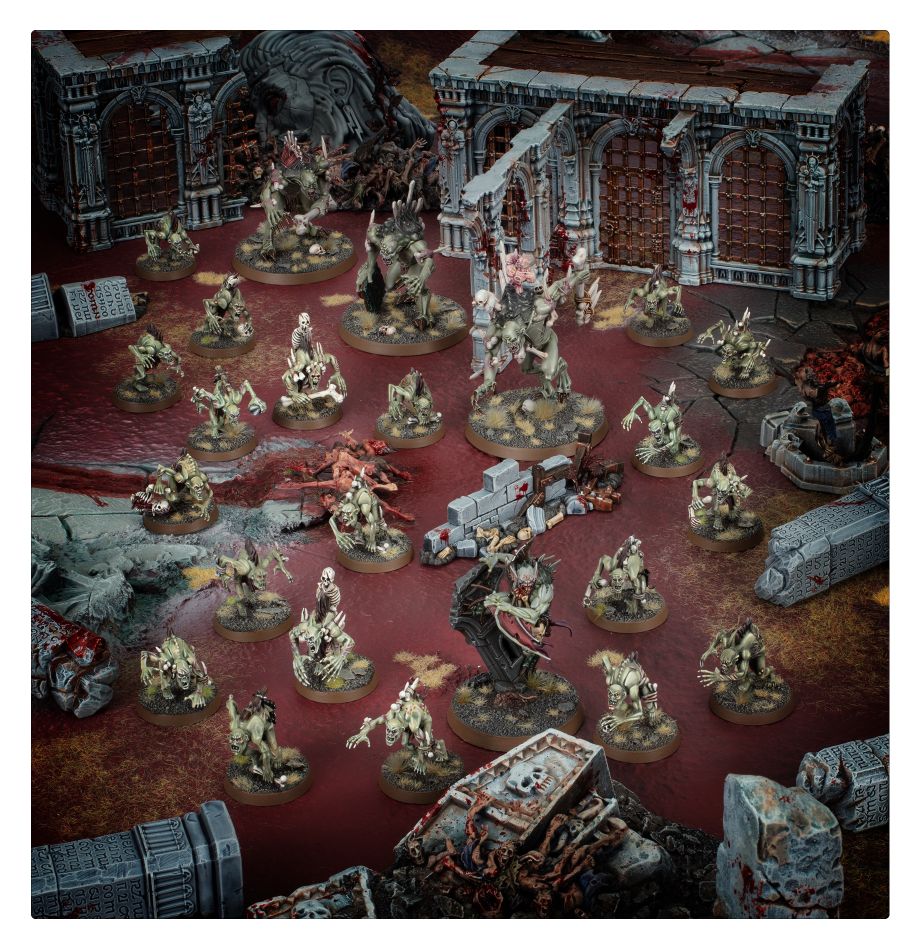 This set contains 3 Crypt Horrors, 20 Crypt Ghouls, and 1 Abhorrant Archregent. The Crypt Horrors can alternatively be built as Crypt Flayers or Vargheists. The kit includes a variety of variety of options and accessories.