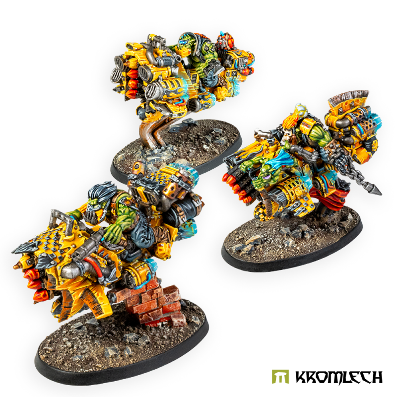 Immorkan Joe, GhostDakka, and SmashaHand are roaring through the grim and war-torn battlefields of the far future! Their Deffbikes are a testament to Orc ingenuity or perhaps sheer madness. Armed with customizable Blasta Guns or Rokkets, these guys are the epitome of Orc engineering - slapped together, teeming with dakka, and always ready for a good scrap!