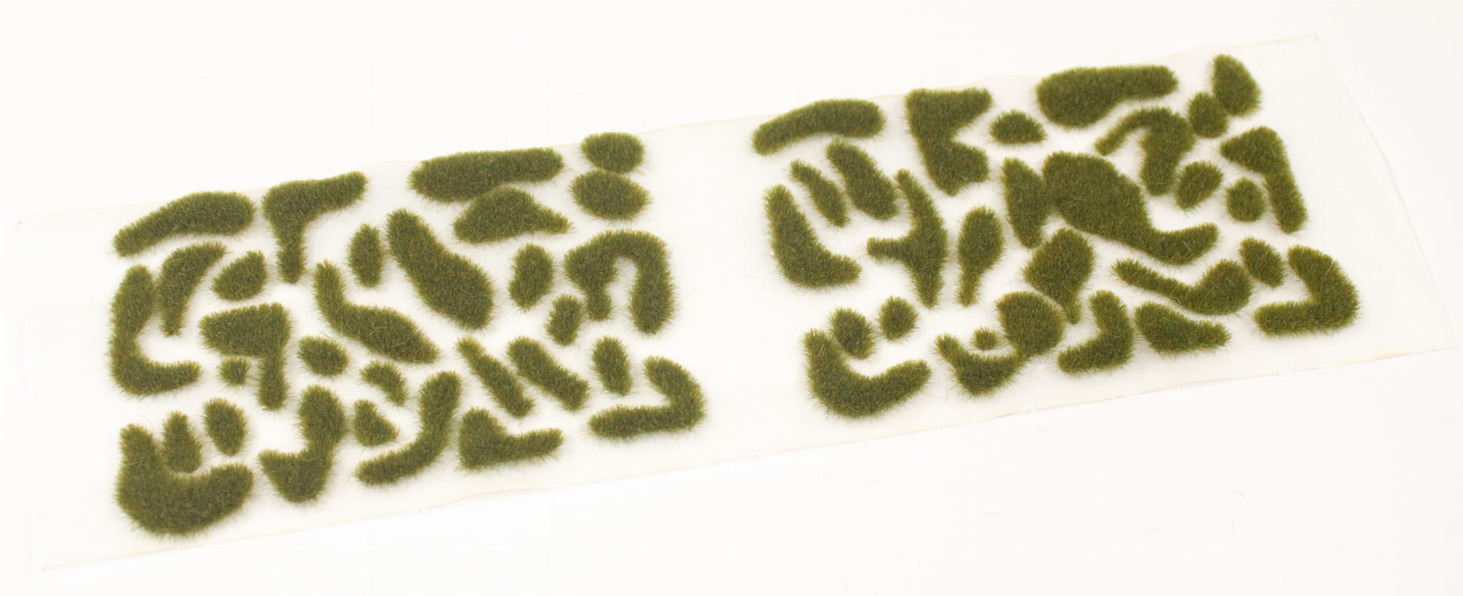 Kępki są samoprzylepne, posiadające przeźroczysty elastyczny klej, przez co są łatwe w aplikacji. Są idealnym rozwiązaniem jako dodatki do makiet, dioram czy podstawek pojedynczych modeli w różnych skalach.
