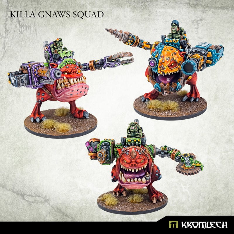 Combined with the unstoppable momentum of savage Gnaw and goblin primitive but brutal technology, Killa Gnaws is one of the most dangerous inventions of the greenskin tribe. Even their pilots have limited control over those enhanced beasts!