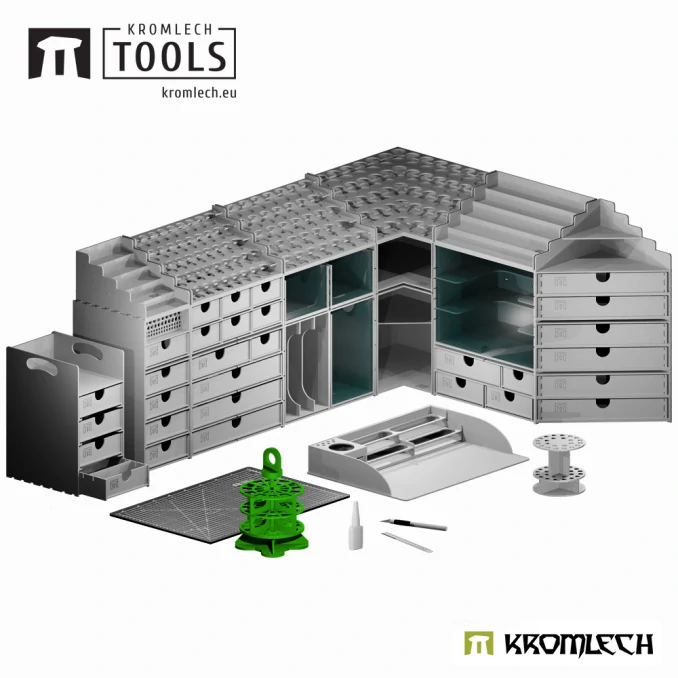Kromlech Tools to seria produktów, które podnoszą poziom doświadczenia hobbystycznego i oferują świetne opcje mebli do stworzenia przestrzeni hobbystycznej, która odpowiada Twoim potrzebom. Dzięki uproszczonej konstrukcji montaż zajmuje niewiele czasu lub wcale.
