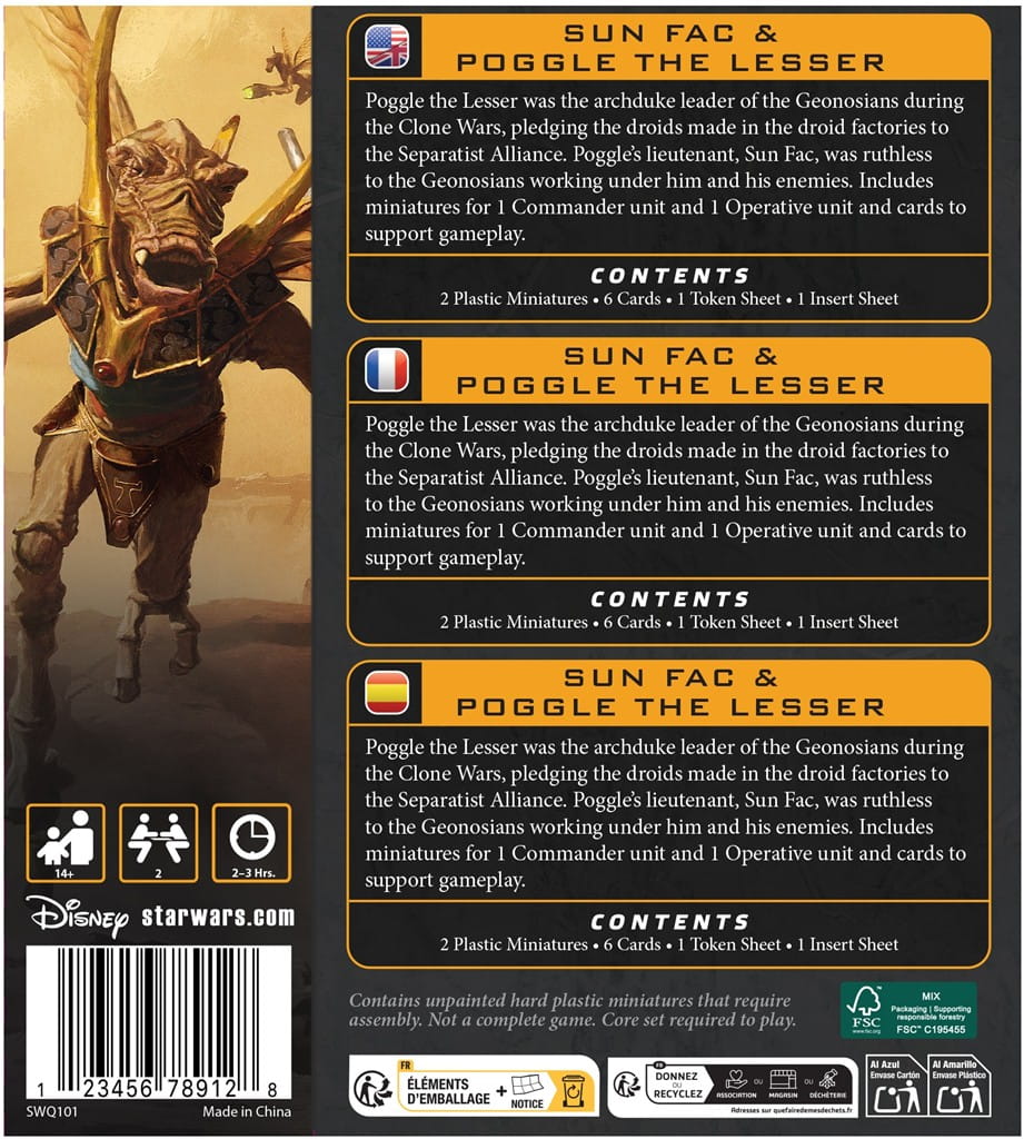 Poggle the Lesser to mistrz strategicznego zarządzania zasobami fabryk droidów, a Sun Fac to wytrzymały generał gotowy przewodzić oddziałom Geonosian na pierwszej linii.
